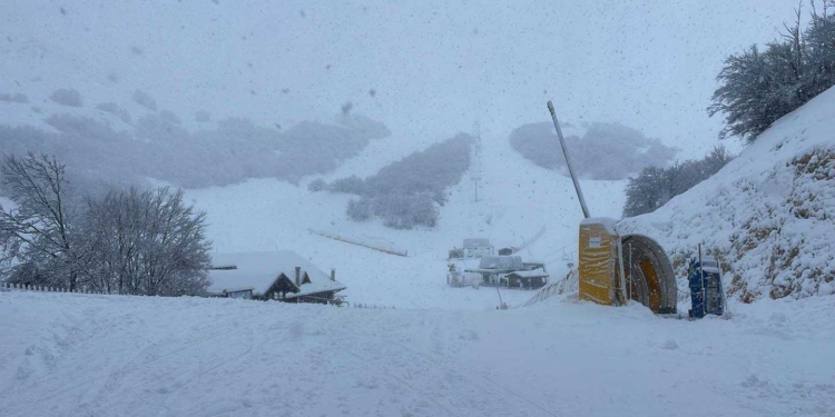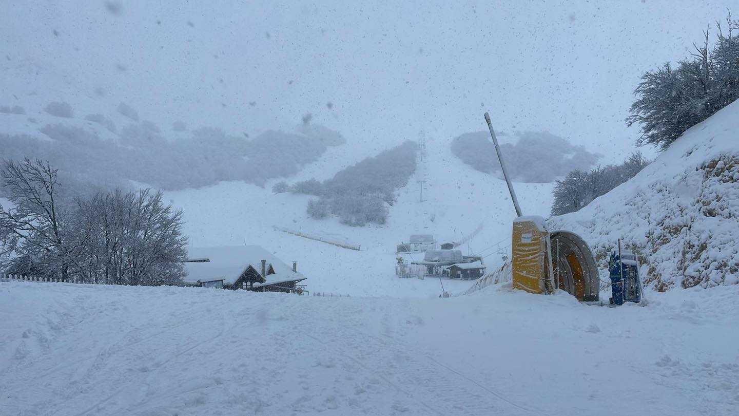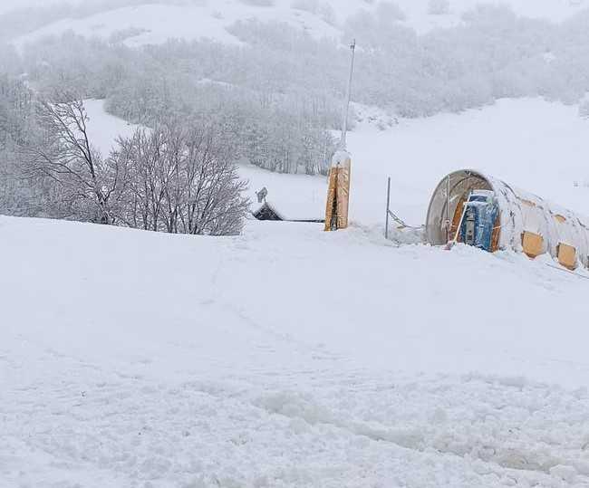 Ovindoli. Precipitazioni nevose intense e visibilità ridotta a Ovindoli, aperti solo Topolino, Brin e Telecabina.