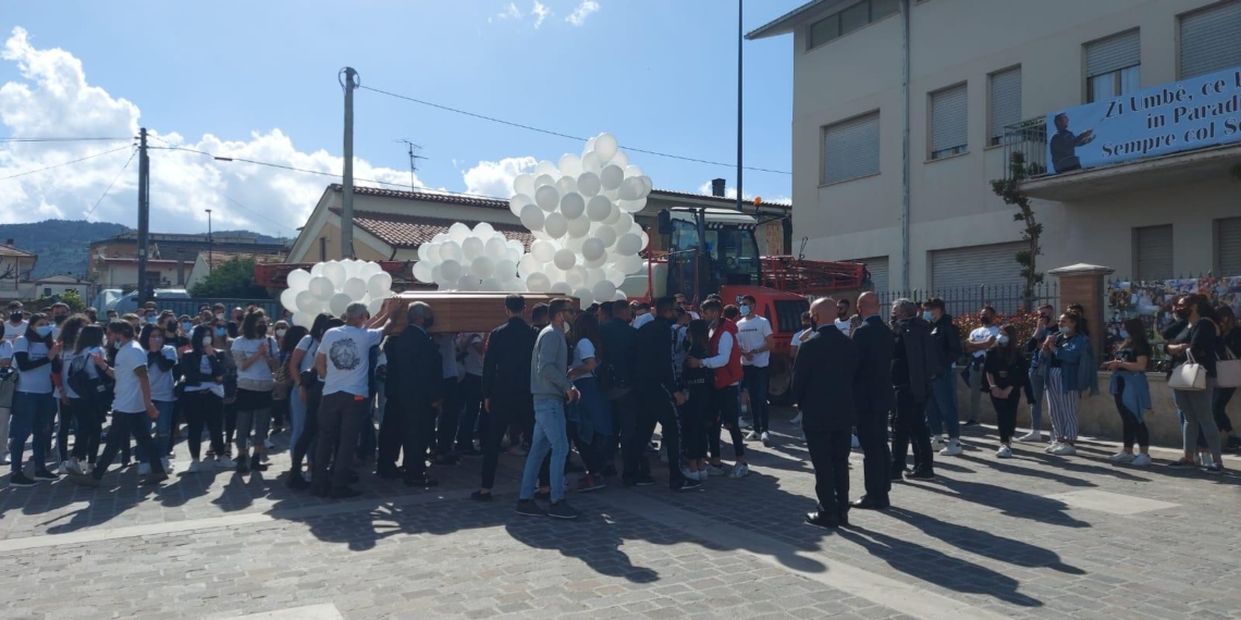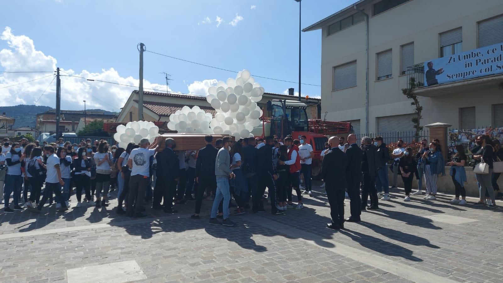 Al centro della piazza della chiesa il grande trattore dell’avezzanese, ricordato da tutti come un ragazzo dall’animo buono e gentile. Tutti intorno, palloncini bianchi e foto del giovane dai grandi occhi celesti che amava la pesca e che lascia un grande vuoto nella comunità.