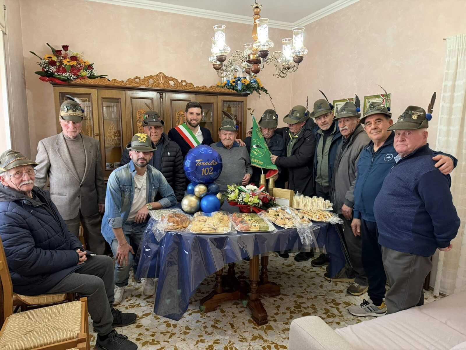 San Benedetto dei Marsi. La comunità di San Benedetto dei Marsi si è riunita nuovamente per omaggiare uno dei suoi cittadini più illustri. Tersilio Carapelle ha infatti celebrato il traguardo dei 102 anni, ricevendo la visita istituzionale del sindaco Antonio Cerasani, dei rappresentanti dell’amministrazione comunale e del gruppo locale degli Alpini.