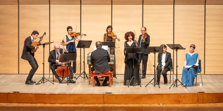 A dare vita allo spettacolo sono state le raffinate voci di Valeria La Grotta (Filli), Gaia Petrone (Clori) e Francesca Boncompagni (Lidia), interpreti di grande sensibilità e precisione stilistica. Le tre cantanti sono state affiancate da un ensemble strumentale d’eccezione: Ana Liz Ojeda e Mayah Kadish ai violini, Pietro Meldolesi alla viola, Alessandro Palmeri al violoncello, Andrea Coen al clavicembalo e Simone Vallerotonda, direttore de “I Bassifondi Ensemble”, al liuto, tutti musicisti di spicco nel panorama della musica antica.