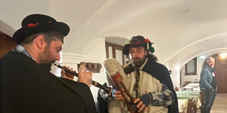 La giornata è stata impreziosita dalla musica del gruppo folk “I Caferza”, con i musicisti Simone e Giuliano che, attraverso zampogna e ciaramella, hanno ricreato atmosfere antiche, richiamando alla memoria il valore dei riti, dei suoni e delle emozioni che appartengono all’Abruzzo più genuino.