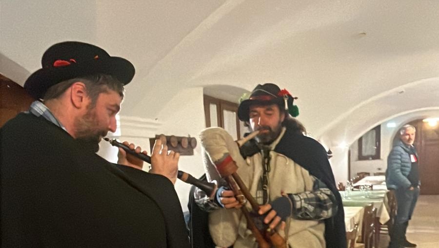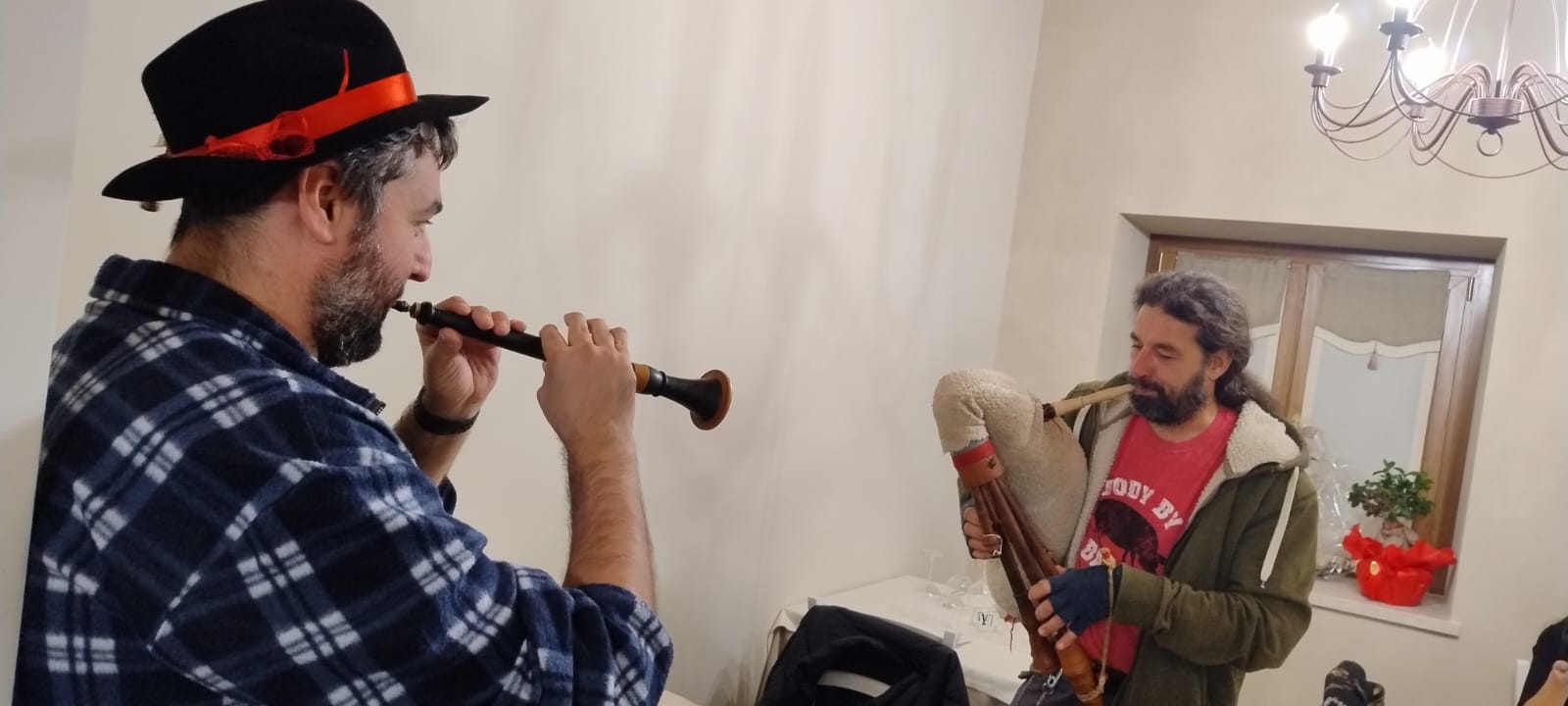 La giornata è stata impreziosita dalla musica del gruppo folk “I Caferza”, con i musicisti Simone e Giuliano che, attraverso zampogna e ciaramella, hanno ricreato atmosfere antiche, richiamando alla memoria il valore dei riti, dei suoni e delle emozioni che appartengono all’Abruzzo più genuino.
