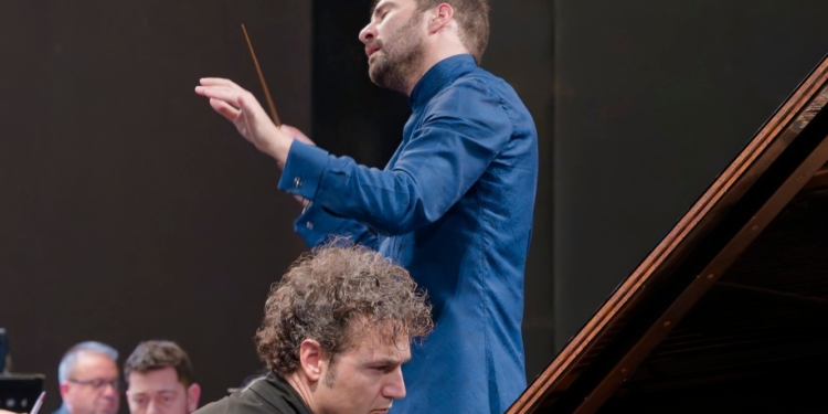 C’è sembrato lasciandoci intuire anche qualcosa di pathico e di delicato quanto di più distante dall’esibizione del lirismo. Per quanto riguarda, invece, i momenti “eroici” del primo e del terzo tempo, i funambolismi, le gare di velocità e di forza con l’orchestra…. ne è rimasta intensa traccia, ma il pianismo di Giuseppe Albanese è rimasto sempre elegante, vaporoso, e di grandissima precisione. Ci siamo accorti con lui della quantità enorme delle indicazioni di mezzo-forte che Rachmaninov ha scritto, di come i passaggi “di bravura” possano acquistare un valore timbrico altro. Certo lirismo disteso e solare, di una sincerità totalmente priva di inibizioni, unito ad una tensione sotterranea, che ha attraversato il terzo movimento, ha pienamente convinto il pubblico che ha “ri-chiamato” più volte al proscenio Giuseppe Albanese e il direttore Jacopo Sipari, il quale ha trasformato in una lussuosa spalla l’orchestra dell’Opera di Varna, chiamata a sostenere il mix di grazia e grinta del solista, regolati da una sensibilità, chiaramente non solo tattile, dove l’una è entrata nell’altro, rendendo, così, l’insieme sovrano e ricevendone in cambio da parte di Albanese, il rondò dalla Sonata in Do Maggiore op.24 di Carl Maria Von Weber, un perpetuum mobile, eseguito con ribollente energia.