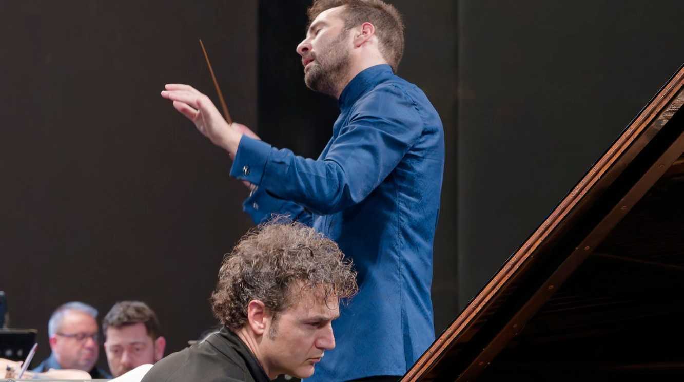C’è sembrato lasciandoci intuire anche qualcosa di pathico e di delicato quanto di più distante dall’esibizione del lirismo. Per quanto riguarda, invece, i momenti “eroici” del primo e del terzo tempo, i funambolismi, le gare di velocità e di forza con l’orchestra…. ne è rimasta intensa traccia, ma il pianismo di Giuseppe Albanese è rimasto sempre elegante, vaporoso, e di grandissima precisione. Ci siamo accorti con lui della quantità enorme delle indicazioni di mezzo-forte che Rachmaninov ha scritto, di come i passaggi “di bravura” possano acquistare un valore timbrico altro. Certo lirismo disteso e solare, di una sincerità totalmente priva di inibizioni, unito ad una tensione sotterranea, che ha attraversato il terzo movimento, ha pienamente convinto il pubblico che ha “ri-chiamato” più volte al proscenio Giuseppe Albanese e il direttore Jacopo Sipari, il quale ha trasformato in una lussuosa spalla l’orchestra dell’Opera di Varna, chiamata a sostenere il mix di grazia e grinta del solista, regolati da una sensibilità, chiaramente non solo tattile, dove l’una è entrata nell’altro, rendendo, così, l’insieme sovrano e ricevendone in cambio da parte di Albanese, il rondò dalla Sonata in Do Maggiore op.24 di Carl Maria Von Weber, un perpetuum mobile, eseguito con ribollente energia.