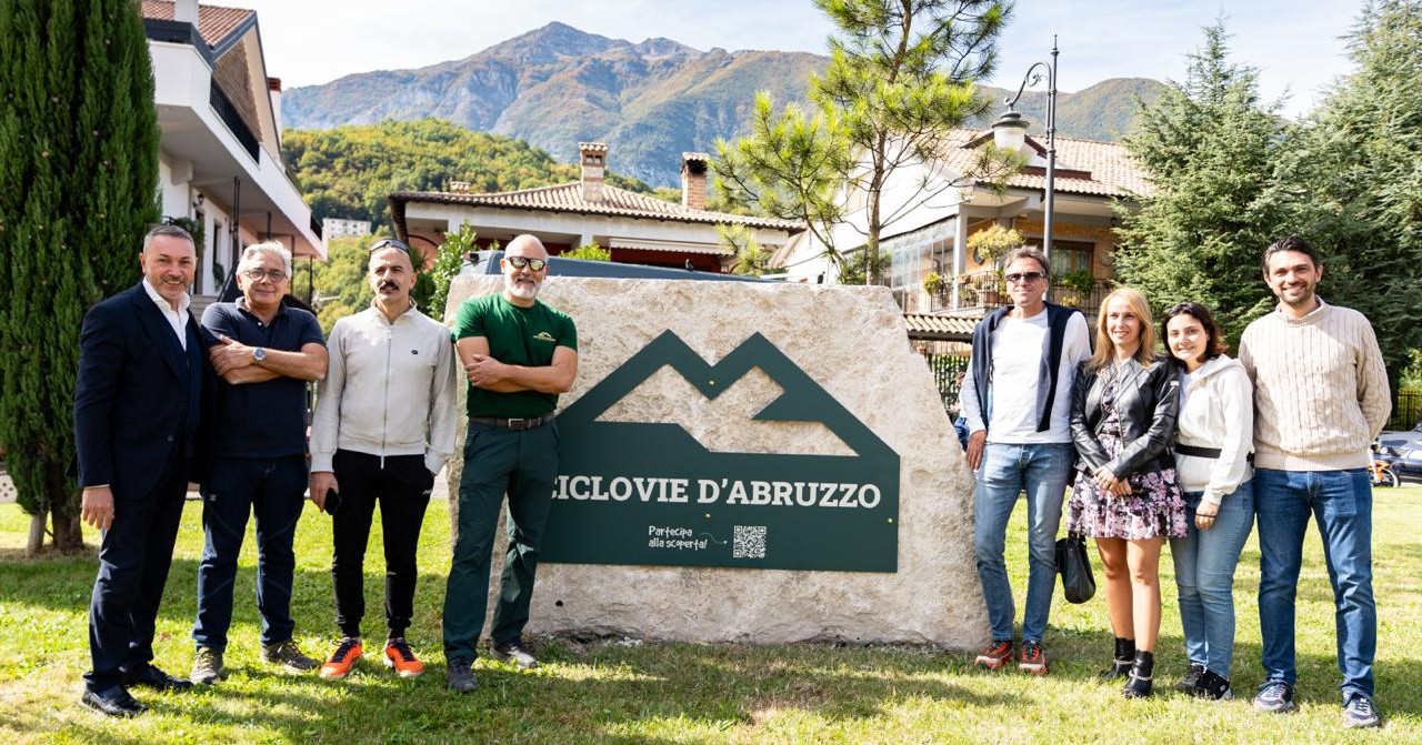 Svelata la prima pietra miliare delle Ciclovie d’Abruzzo: grande entusiasmo a Civitella Roveto