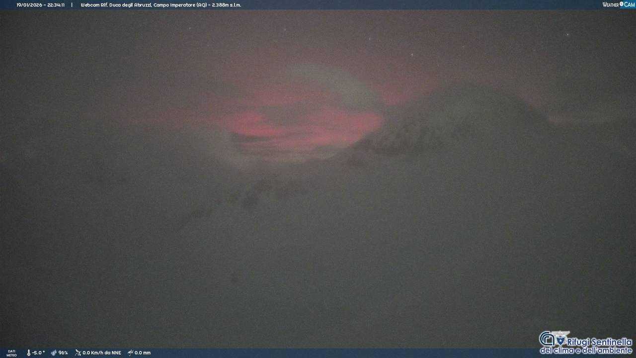 Nonostante le condizioni avverse, alcune testimonianze visive sono comunque arrivate dalle zone montane. Le immagini delle webcam del Rifugio Duca degli Abruzzi, seppur limitate dalla copertura nuvolosa, documentano un contesto atmosferico suggestivo e confermano la presenza di cieli disturbati e di un ambiente meteo decisamente poco collaborativo per l’osservazione astronomica.