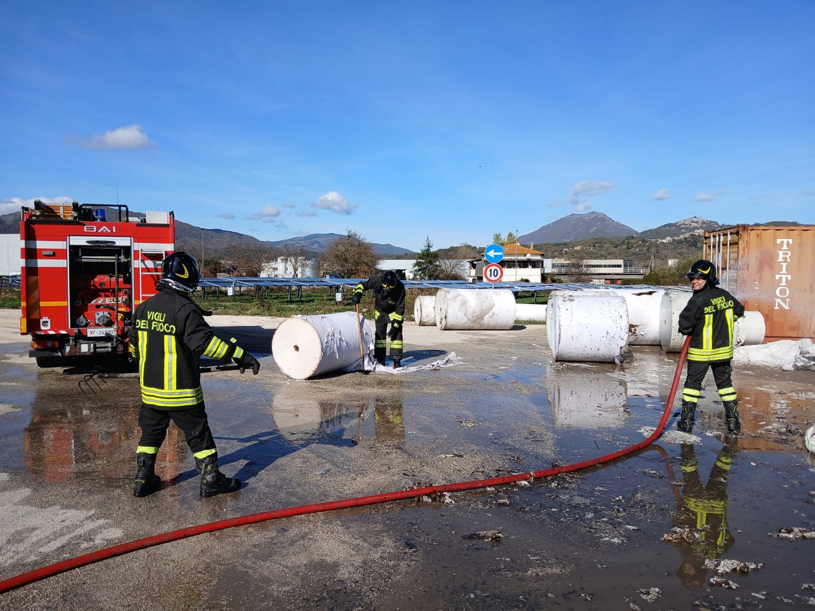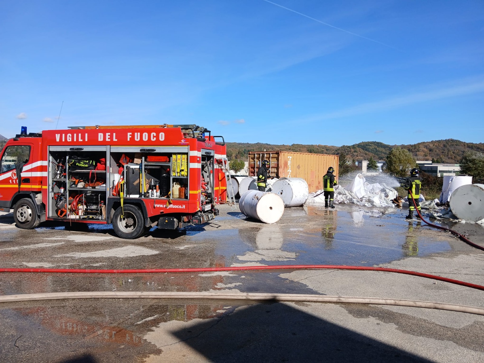 La notevole quantità di bobine di carta all’interno del fabbricato, ha reso particolarmente complesse le operazioni di spegnimento.