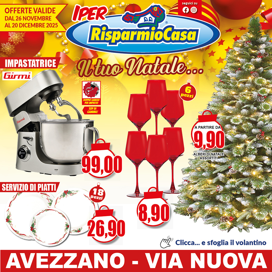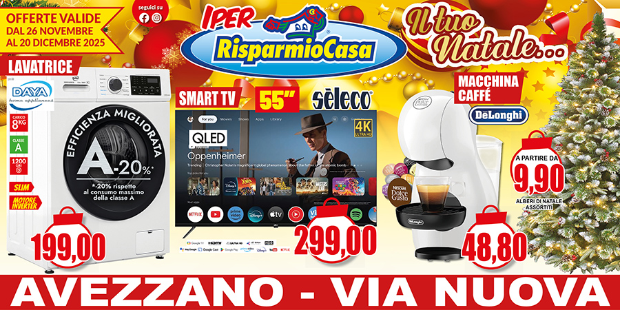 “Il tuo Natale a prezzi bassi sempre” non è solo uno slogan, ma un modo di vivere le feste senza rinunciare alla bellezza, alla qualità e alla serenità che tutti desiderano. Iper Risparmio Casa di Avezzano vi aspetta, come ogni anno, con orario continuato per accompagnarvi nelle settimane più luminose dell’anno.
