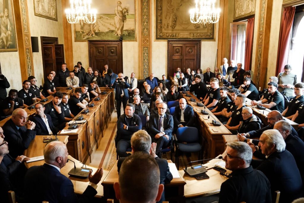 Gli organizzatori hanno deciso di dividere la manifestazione in due momenti. Il primo in una Sala Consiliare stracolma per la presentazione ufficiale dell’ISWEB Avezzano Rugby. Domenica la compagine affronterà la prima partita del campionato di serie A1 2025/2026. Una squadra nuova, consapevole, costruita – come ha detto il presidente Alessandro Seritti – “con la testa e con il cuore”.