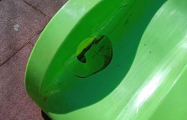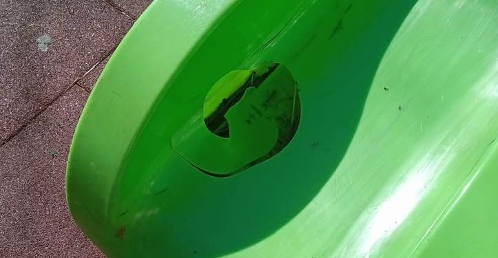 Come visibile anche dalle fotografie, lo scivolo è stato gravemente danneggiato: un sanpietrino, rimosso lateralmente, è stato lanciato con violenza contro la parte finale della struttura”. Ha spiegato il sindaco di Cerchio, Gianfranco Tedeschi.