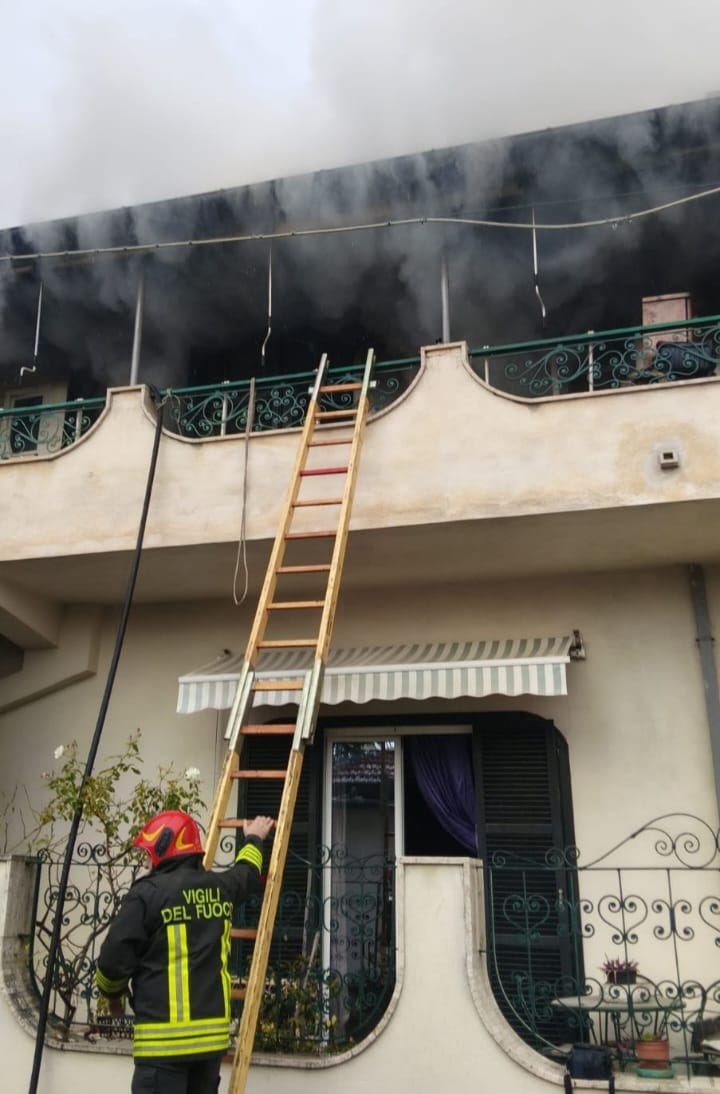 Avezzano. Violento incendio in una casa di Avezzano, famiglia salvata dai Vigili del fuoco.